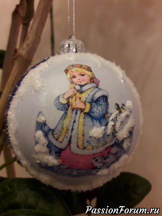 Декупаж новогоднего шара на елку.