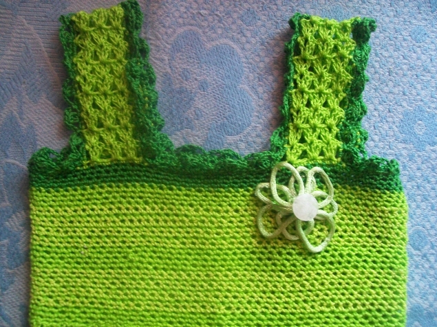 Чудесный сарафанчик.Яркий, нарядный.И связан аккуратно.Молодец.