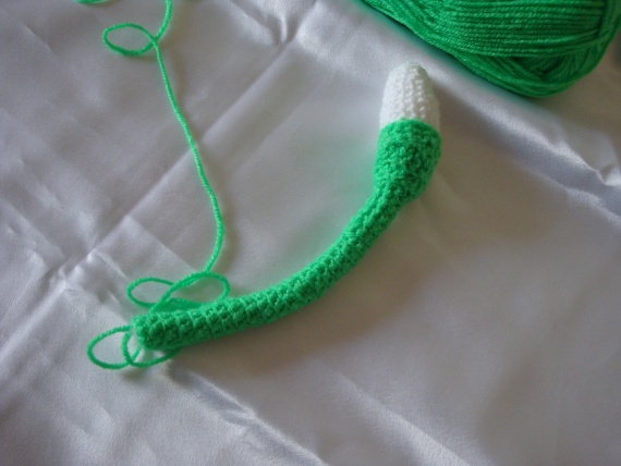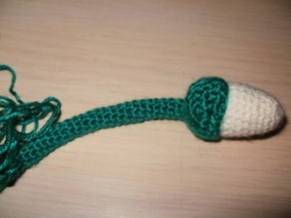 Дальше берем зеленую нить и вяжем новую деталь.