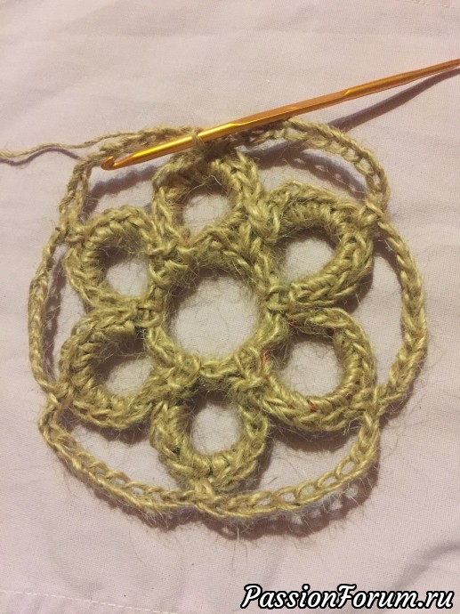 Можно и дальше в таком же духе обвязывать, но тогда напрашивается вопрос: "На фига козе баян - ей и так весело?...", то бишь, можно и без колечек что-то подобное изобразить.