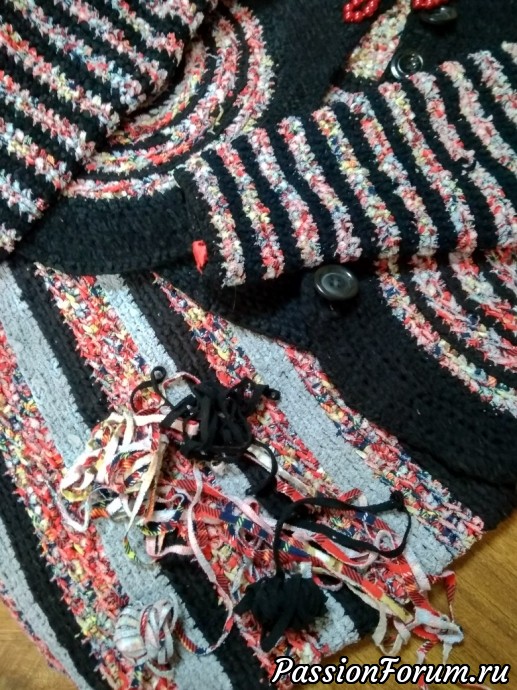 Вот и я решила поучаствовать в конкурсе " Из ничего, что-то", уж больно заманчиво, и очень нравится эта тема. Попали мне в руки трикотажные лоскуты со швейного предприятия, они у них идут на выброс, лоскут примерно размером с ладонь. Мне их принесли, как тряпочки для вытирания кисточек ( веду кружок рисования с детьми, и вообще многим увлекаюсь, авось сгодится на что-нибудь)) Вот я и решила нарезать лоскут на тоненькие полосочки и связать себе костюм.