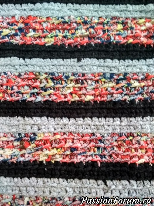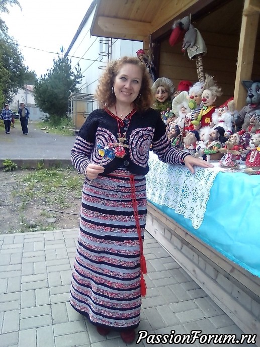 Костюм я вязала к экологическому фестивалю, чтобы поучаствовать в "ЭКОмоде", а потом пригодиться на ярмарках (иногда я езжу на ярмарки,фестивали со своими работами). Черного лоскута не хватило, в ход пошли спортивные брюки и футболки ( которые у меня были отложены на тряпки). Вот и получился мой костюмчик из тряпок. Стригла тряпочки и вязала костюм -два с половиной месяца. Вязала я его крючком (я вообще не занимаюсь вязанием, умею самые элементарные столбики и все) . Куда бы я не надевала костюм, он не оставался незамеченным.