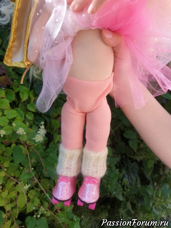 Розовые легися и связанные гетры