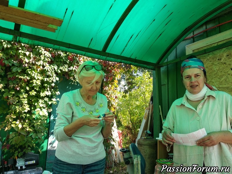 Затем Томочка провела дегустацию молдавского меда. "Я каждому по контейнеру (!) сейчас налью"-, эти слова сначала прозвучали угрожающе, но потом , получив по баночке с продуктом, мы все дружно напробовались вкуснющего, настояшего, прекрасного меда. Затем каждая представилась (ник и имя), полились истории из жизни рукодельниц о находках, ноу-хау, планах и мечтах. Наталия(tasha) поведала "ветеранскую" (про 2016 год) историю о встрече здесь же, о походе "за реку" ( поймут только те, кто был тут), а потом предложила хозяевам соорудить (построить) беседку для будущих наших зимних встреч...Не знаю, что пронеслось в этот момент в голове у Юли (vol27), но все присутствующие радостно приветствовали такое пожелание. Наша Юлия Ивановна поделилась историей из своего водительского прошлого, она тоже были увлекательна. Всем было очень весело и интересно за оживленной беседой...