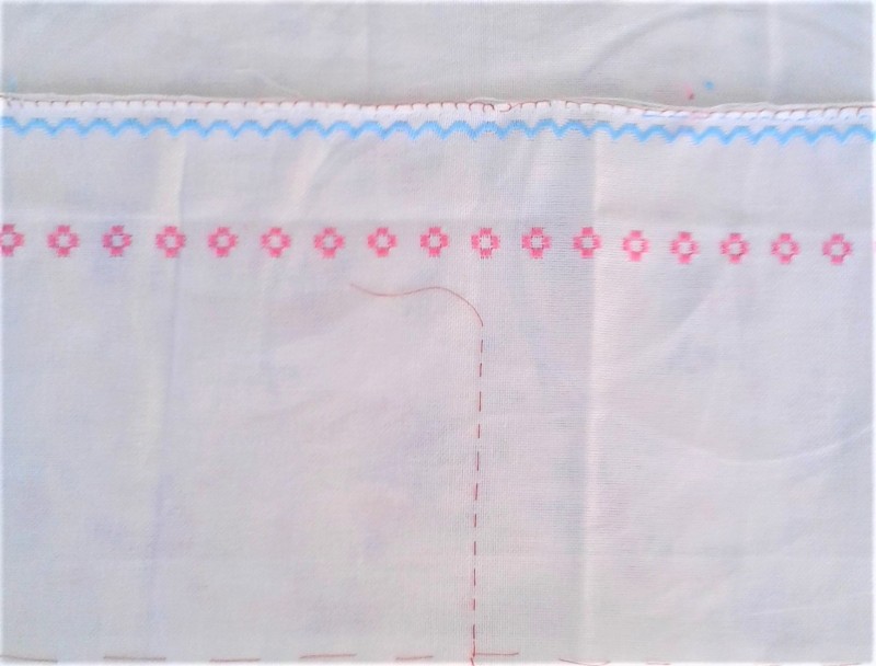 Окантовку синими нитками и дырочки для ленточки я сразу решила вышить только хардангером: