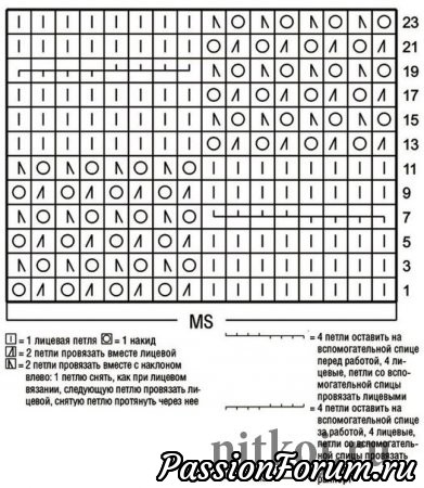 Если осталось еще 22 петли, рукав вязать далее по схеме узора.
