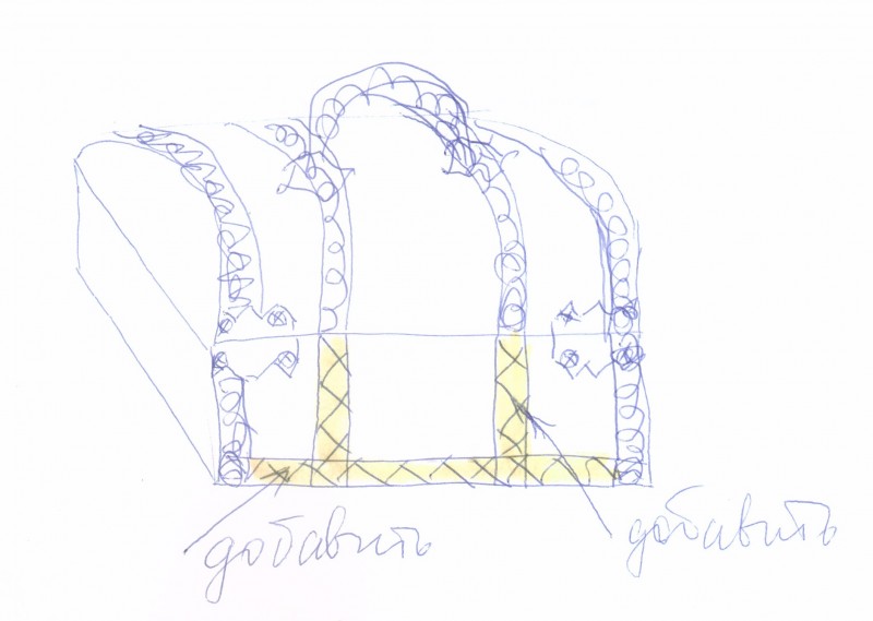 сделай также ножки, чтобы поднять сундучек. На рисунке оранжевым я показала, что надо добавить.
