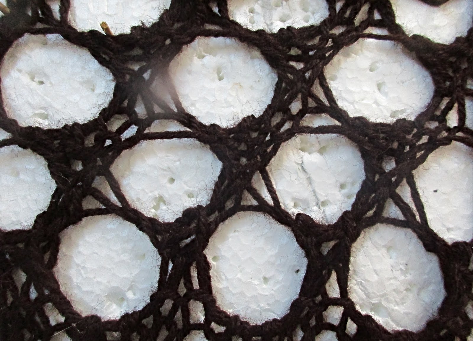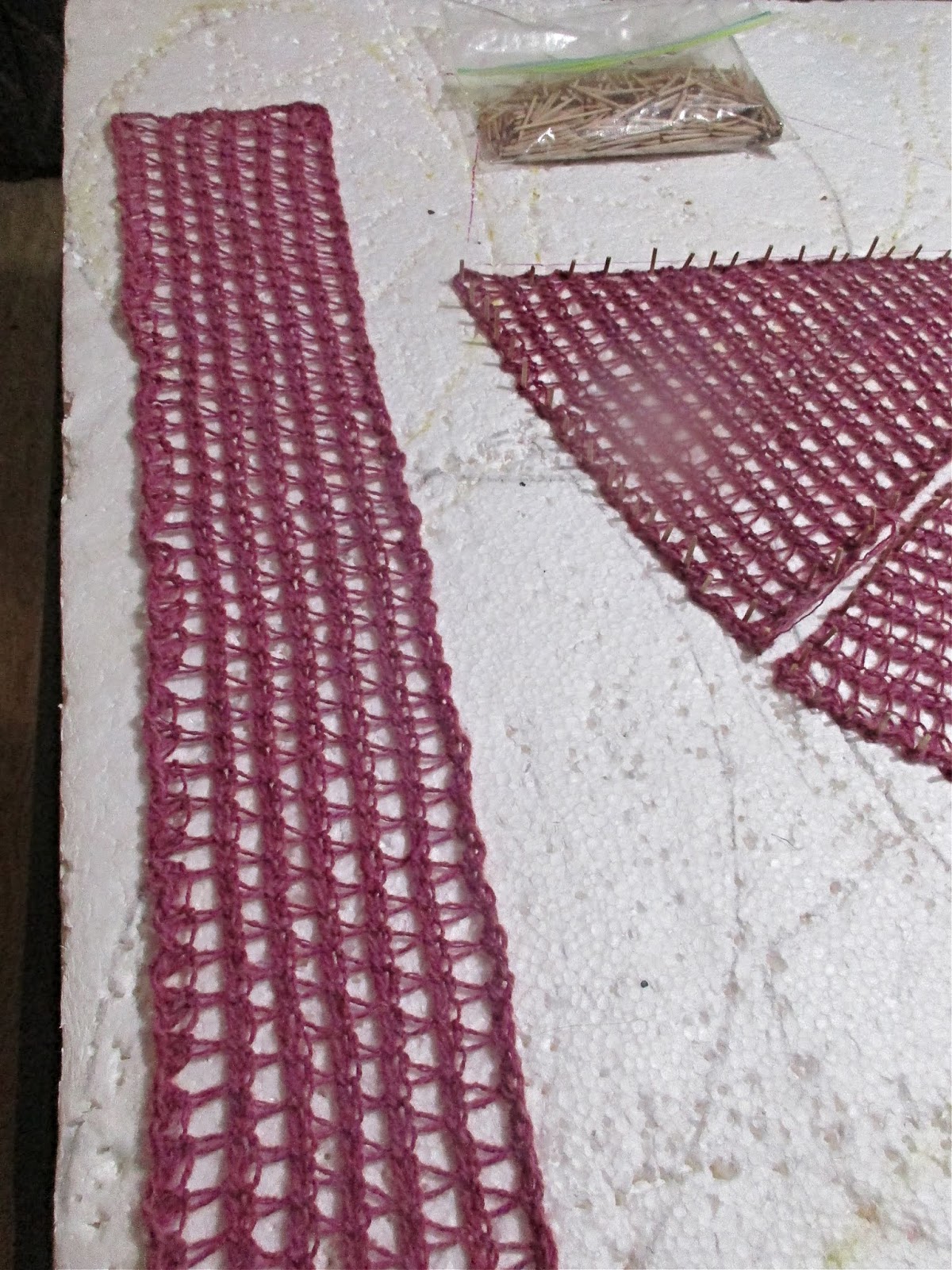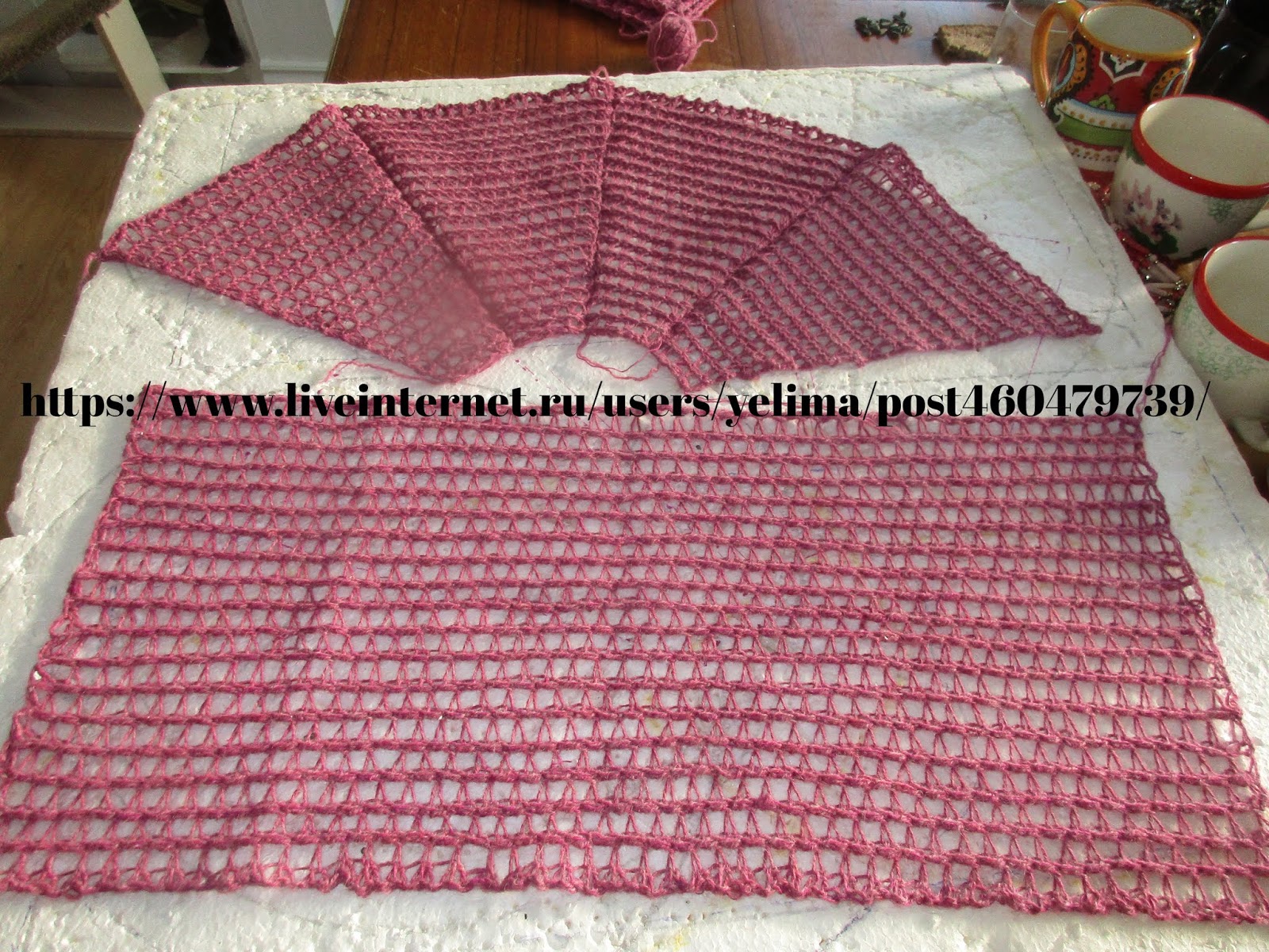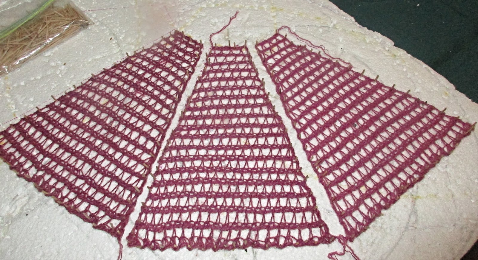 Эти вяжутся из очень простых раппортов, затем блокируются,растягиваются ,после чего узор полностью трансформируется-в другой.