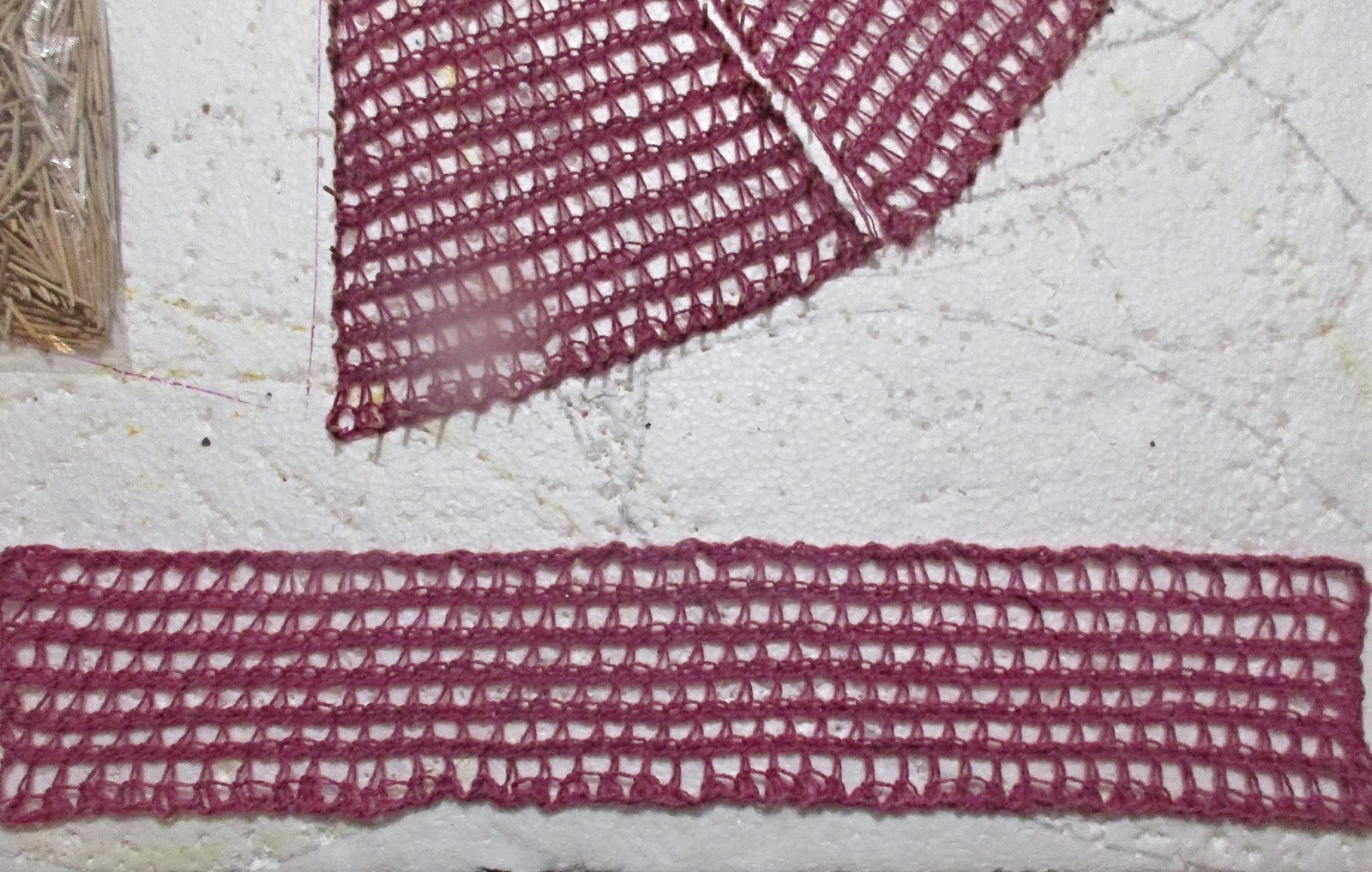 За последние несколько дней, сделала несколько экспериментальных провязок, самопридуманным узором ''закреплённая сеточка''; с целью определить её растяжимость и изменяемость узора.
