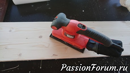 Доски, к сожалению, купила второго сорта, пришлось доставать шлифмашинку, потому что шкуркой долго.