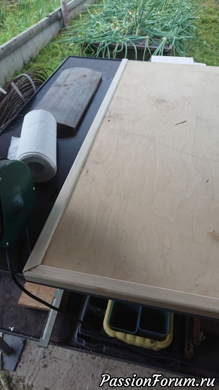 Фанеру я ошкурила, внимательно посмотрела и решила края обклеить уголком.