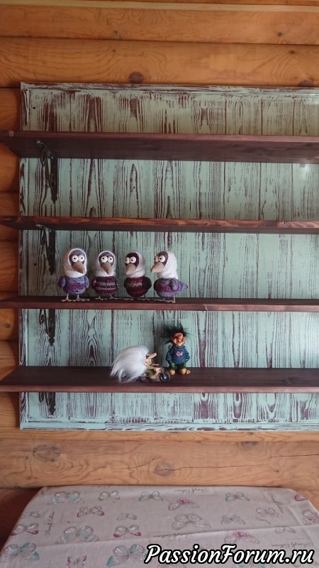 Ну, Татьяна, ну молодчина! Красивые полки получились, а жильцы их так вообще потрясающая компания)))) Сама обожаю работать со всякого рода электроинструментами, в подарки мне их стесняются дарить, сама себе подарки эти делаю, радуюсь как ребёнок каждому новому приобретению)))) Люблю работать с деревом.