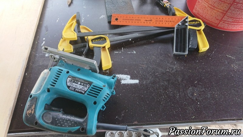 Когда все приклеилось, выяснилось, что высота фанеры меньше ребра уголка. Надо убирать и здесь в ход пошел рубанок, который опять же мне подарила мама для коллекции как раритет! Чудесная вещь и такие завитушки выходят.
