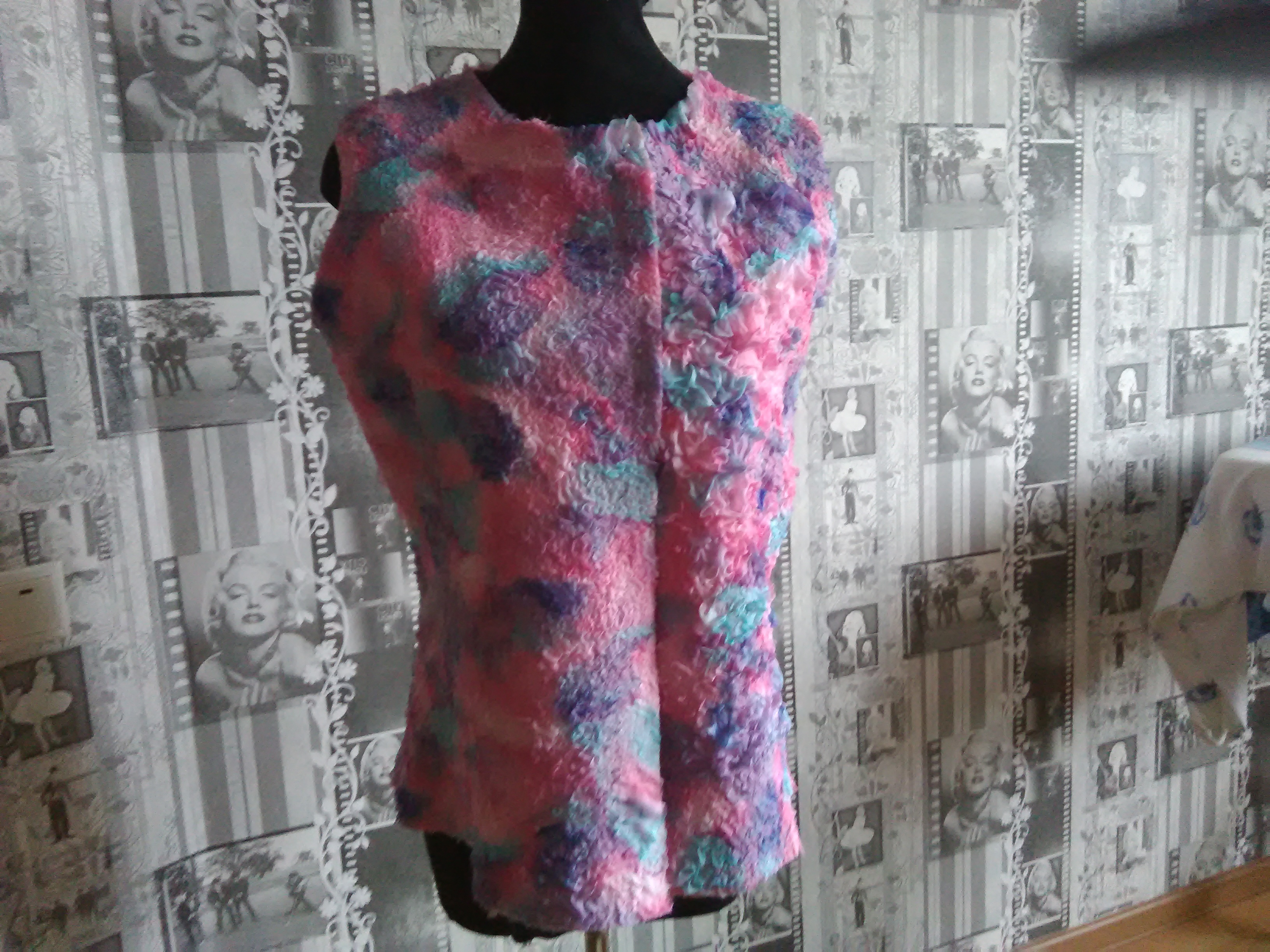 Здравствуйте форумчанки.Давно не валяла,огород,внучки,первый класс,одни заботы.Вот наконец сваляла жилет.