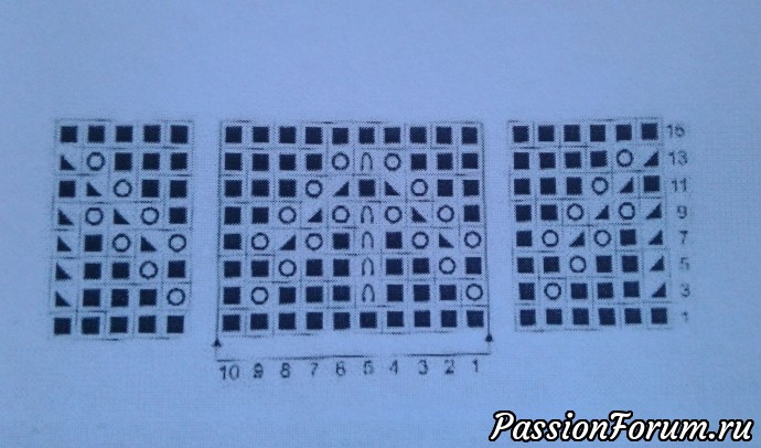 Дальше вяжем две детали каймы. Для каждой из них набрать на спицы большего размера эластичным способом 493 петли, включая кромочные. Связать 2 ряда платочной вязкой, дальше вязать по схеме. Я закрывала эластичным способом с накидом.