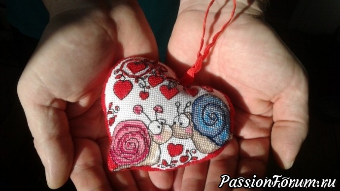 Вот так моя вышивка с улитками превратилась в объемное сердечко, украшенное вышивкой с обеих сторон.