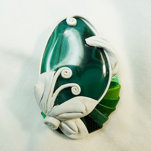 Брошь с красивым зеленым АГАТОМ, модель 16 года