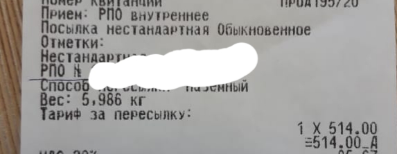 Стоимость пересылки посылки по России . На чеке вес и стоимость.