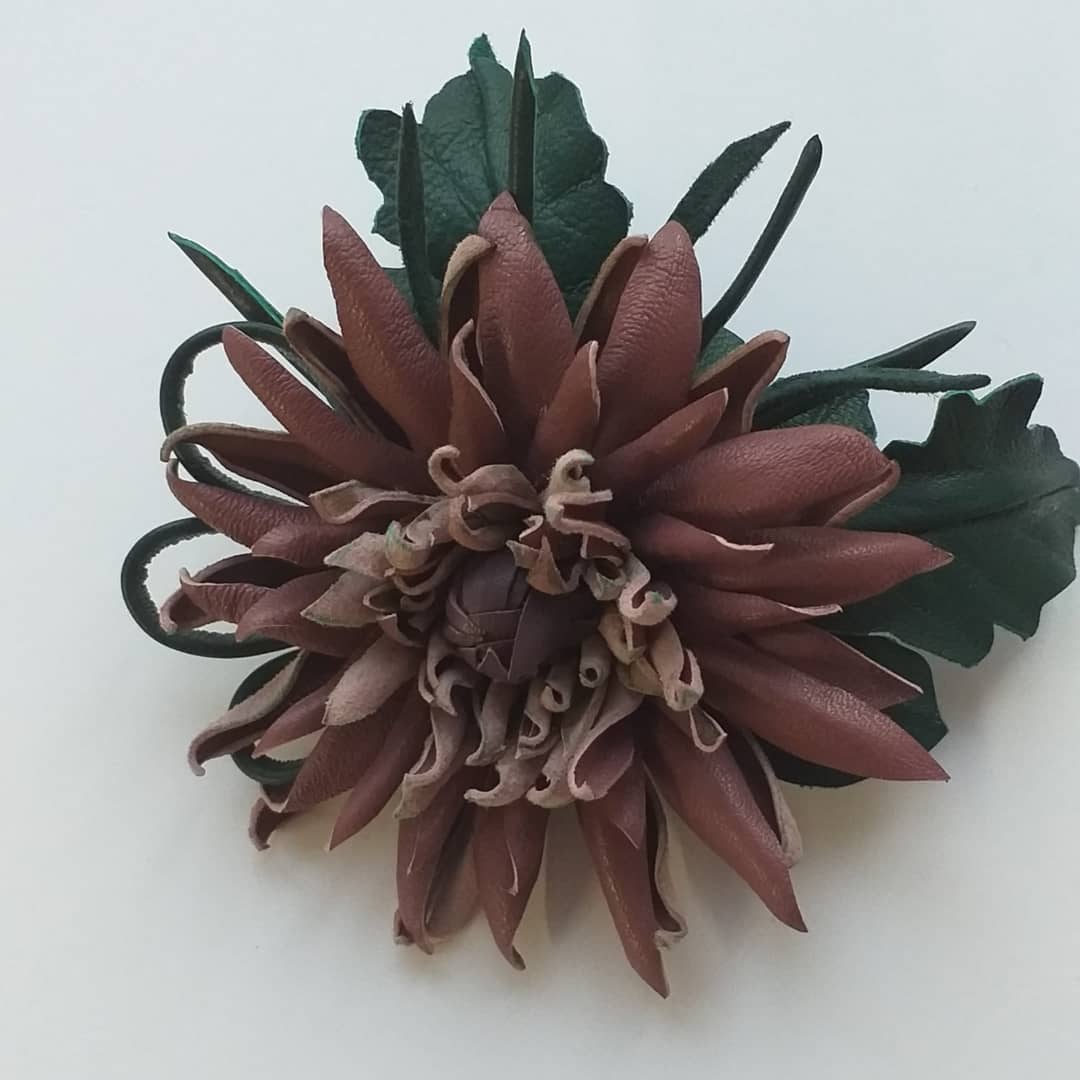 Брошь-цветок из натуральной кожи.