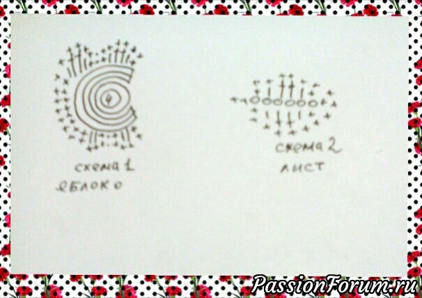 Начало вязания чехла- книжки на смартфон. Готовые заготовки аппликаций яблока и листика.