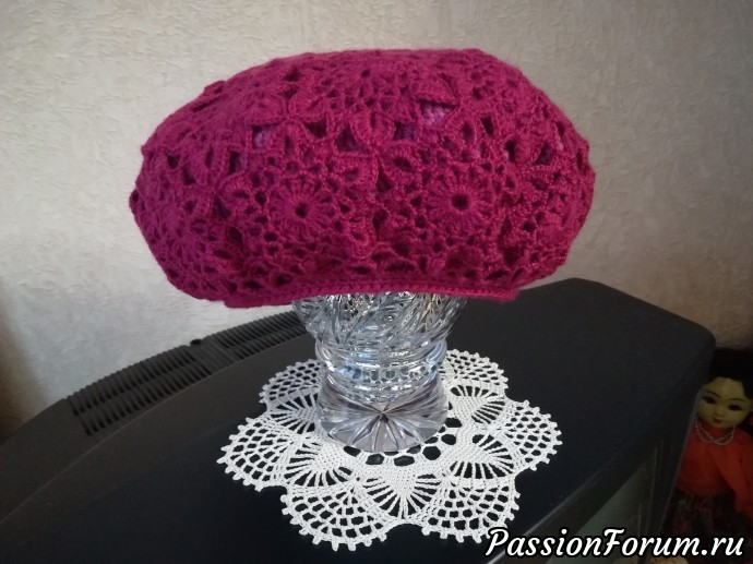 Здравствуйте дорогие форумчане! Хочу показать вам свой берет, который я связала на заказ. Берет состоит из основы и ажурного верха.