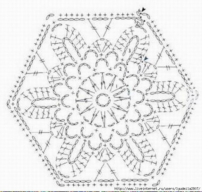 Во втором ряду, есть пятиугольные мотивы. За счет них берет приобретает форму. Смотрите на фото, по которой я вязала бежевый берет, и также по этой раскладке, но уже новыми цветочными мотивами, я связала этот берет.