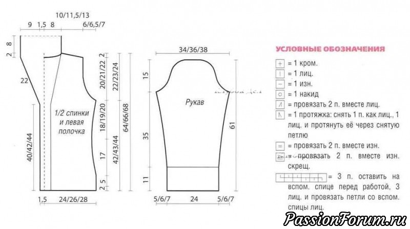 Ажурный узор:вязать по схеме, на которой приведены только лиц. р., в изн. р. петли вязать по рисунку.