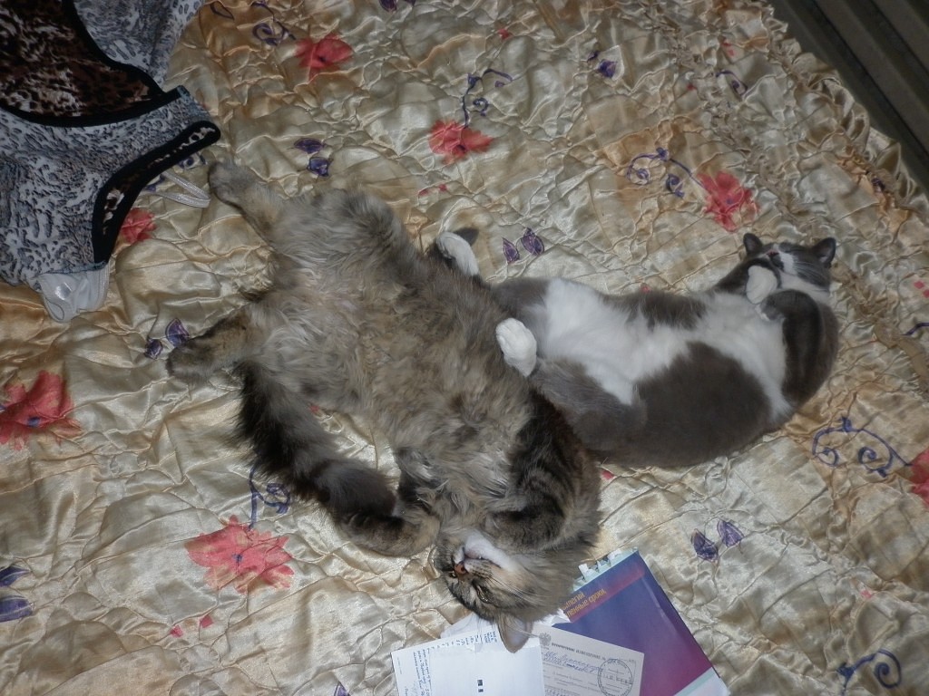 Решила рассказать истории о моих животных, каждый из них появился у нас в семье при каких либо нетривиальных обстоятельствах. Вот и у животных есть интересные истории, только расскажу их я. Масяня- всю жизнь любила болтать. Приехали с моря, высоко на трубе сидит серо-белый котенок и не переставая орет. А у нас всегда с кошками-собаками порядок был, в смысле присутствия. Ну что делать, я настояла, оставили. Муж недоволен был присутствием очередной живности, но промолчал. Дочь оперативно пристроила голубой бант котенку и стали жить-поживать. Через неделю Масяня пропала. Ну вроде вздохнули спокойно, ушла и ушла, одним ртом меньше. Еще спустя неделю повезли ребенка в школу, а наша краля с голубым бантом сидит на остановке за километр от дома и явно скучает. Заграбастали дуреху и обратно домой. Прожила она у нас то ли 17, то ли 15 лет, умерла этой весной. И то непонятно куда ее в поле заснеженное понесло, когда дома пол теплый.