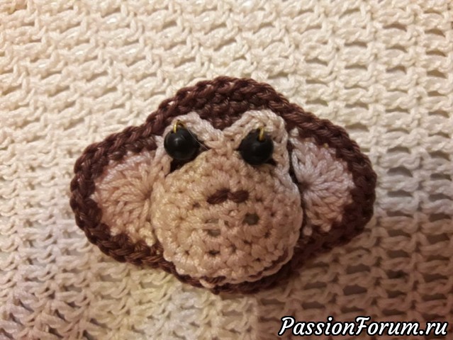 5 ряд: 4 сс, 8 вп, пропустить 2 петли основы мордочки, сделать сс в третью, 8 вп, снова пропустить 2 петли основы и с третьей провязать 11 сс.