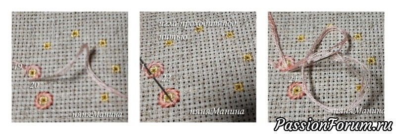 А на схеме невозможно изобразить, что нитка подныривает, поэтому на словах обычно говорят. Это мое упущение, извините пожалуйста.