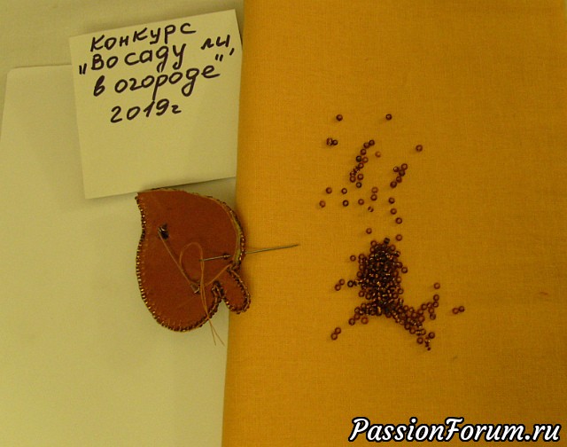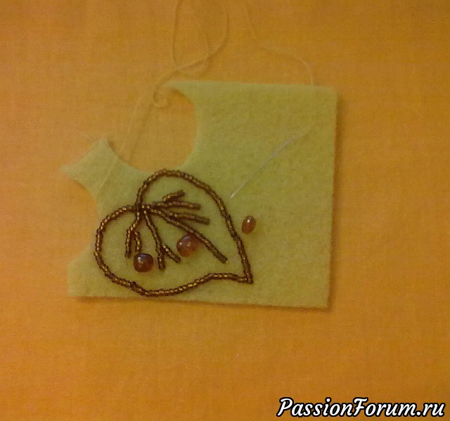 По краю листа обшиваю зубчиками,чередую бисер по размеру.Для одного зубчика у меня 1 мелкий,1 крупный и ещё 1 мелкий.