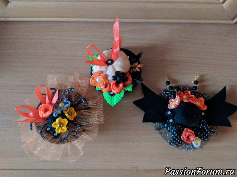 Мои подарочки девчатам: Алине, Карине, Ангелине и Веронике, - заколочки в оранжевых тонах на Хэллоуин: