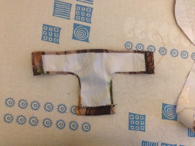 перенесем ее на ткань. Вырезаем. обрабатываем края. Края поворачиваем так чтоб там поместился шнур.