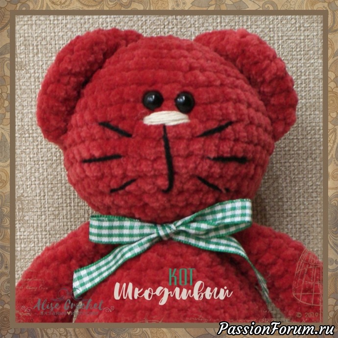 Предлагаю вам бесплатный мастер-класс от Анны Черниковой по вязанию плюшевого кота крючком. Шкодливый котенок получается очень мягким и нежным, он обязательно понравится вам и вашему ребенку!