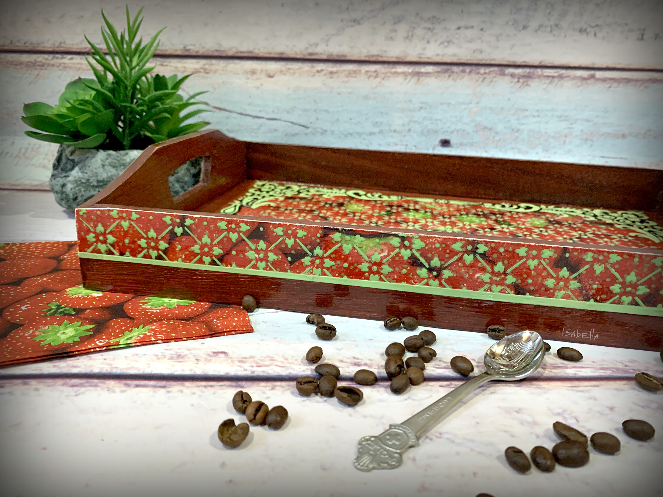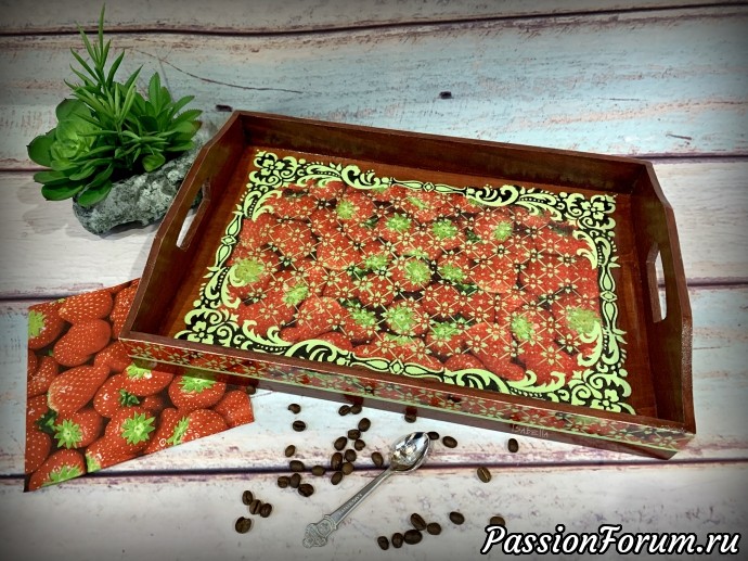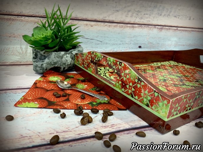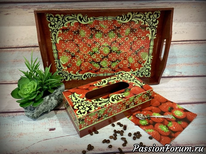 Набор из подноса и салфетницы "Клубничная симфония".