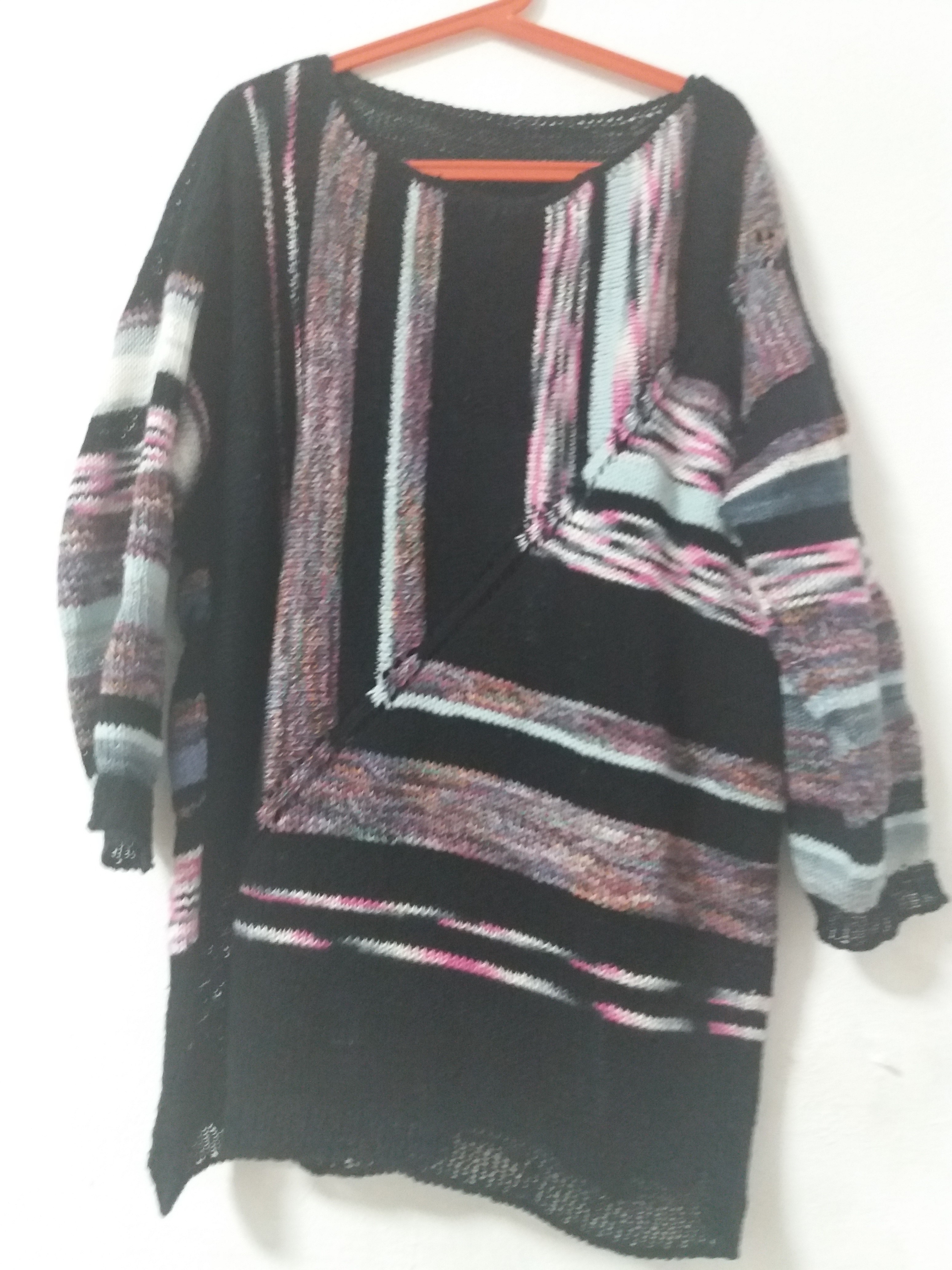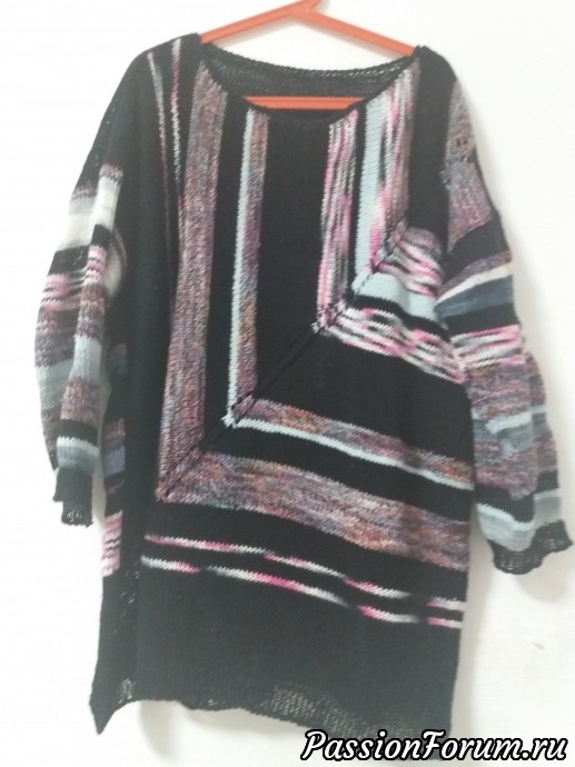 Как говорит моя невестка- шикардос! Очень интересно и не скучно. Плохо вижу, не разглядела откуда начинали. Я как раз собираюсь перевязать домашнюю кофту в таком стиле. Очень понравилась.