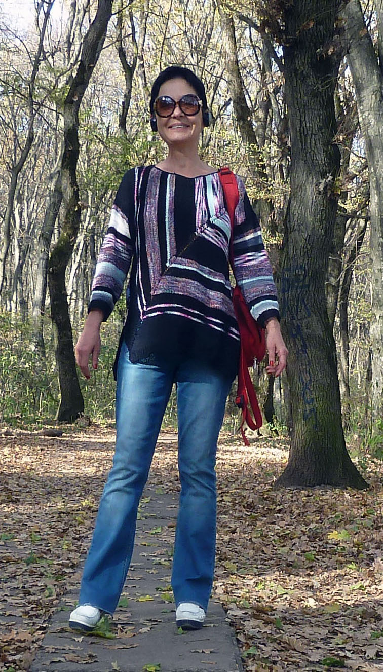 Замечательно смотрится. Хорошо, что она свободная, линии получились мягкими, фигура дышит, а красный ремешок сумки- точка завершённости.