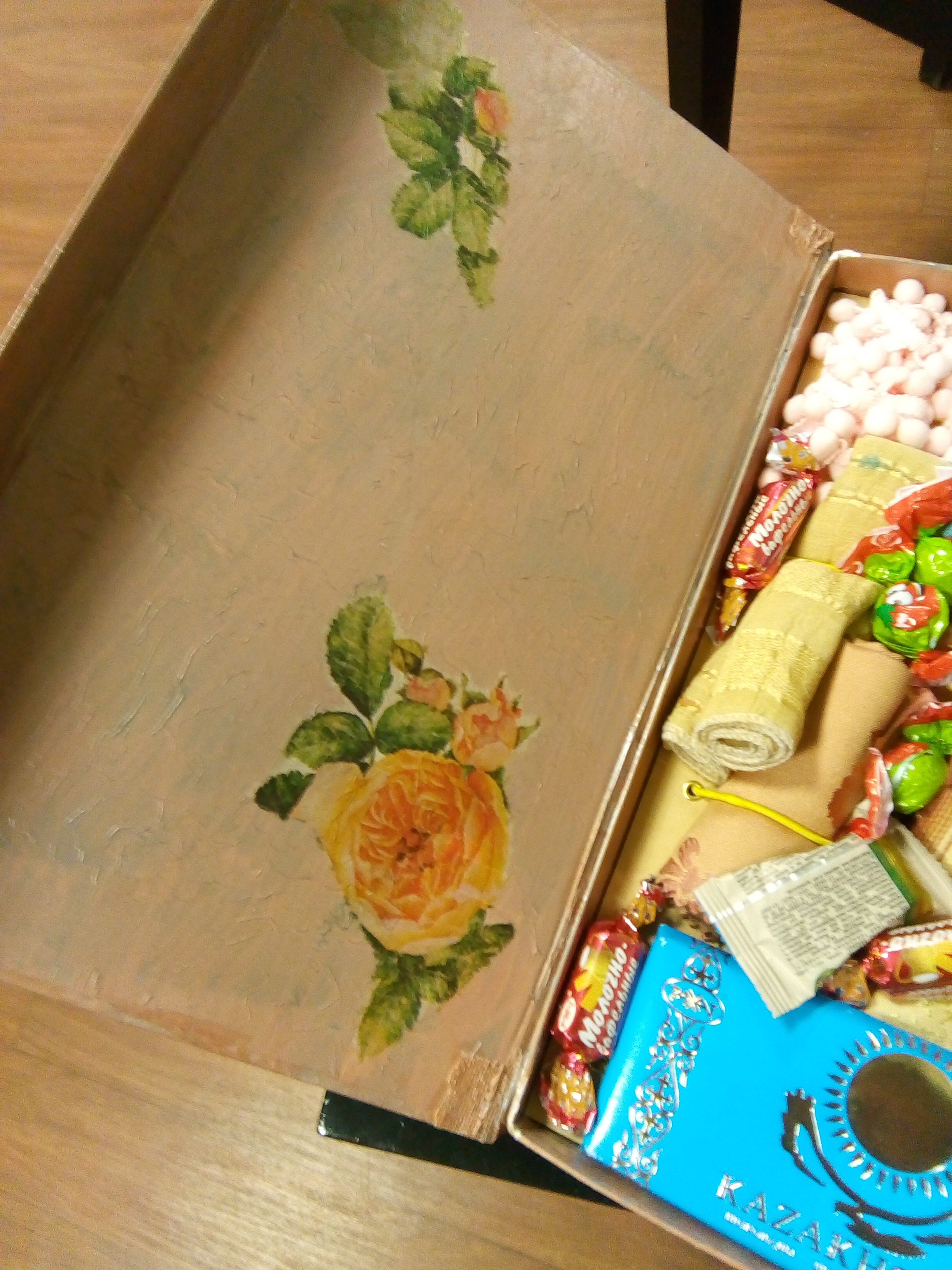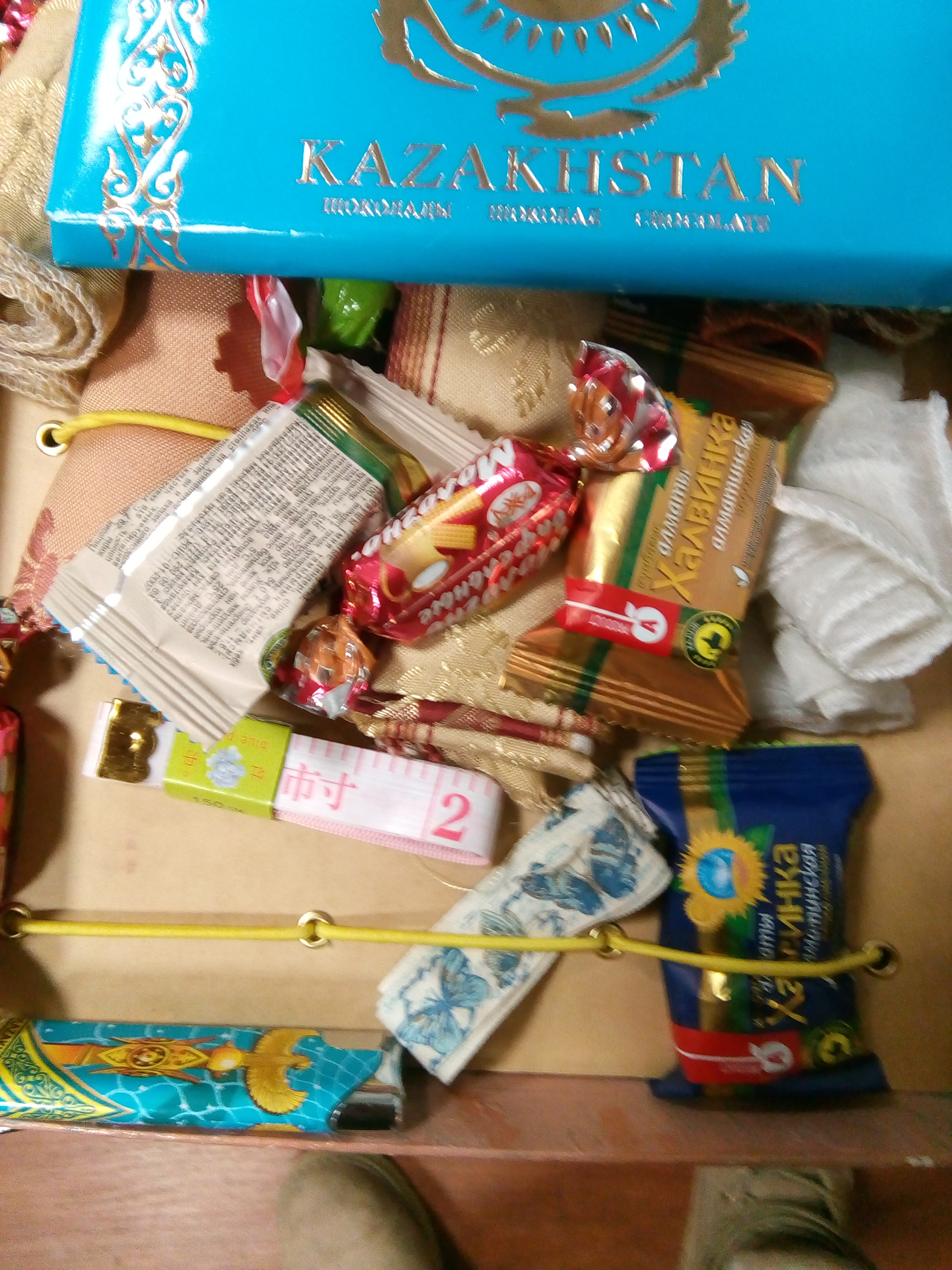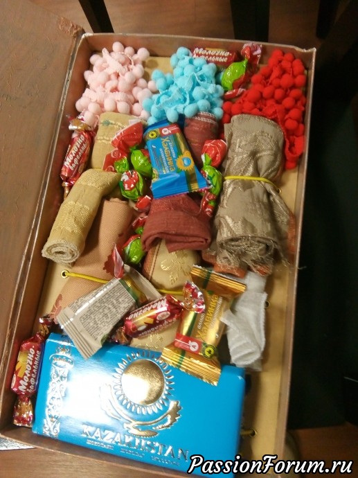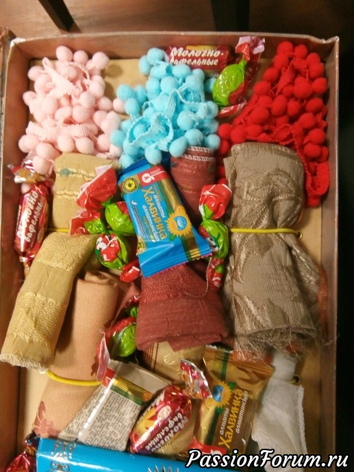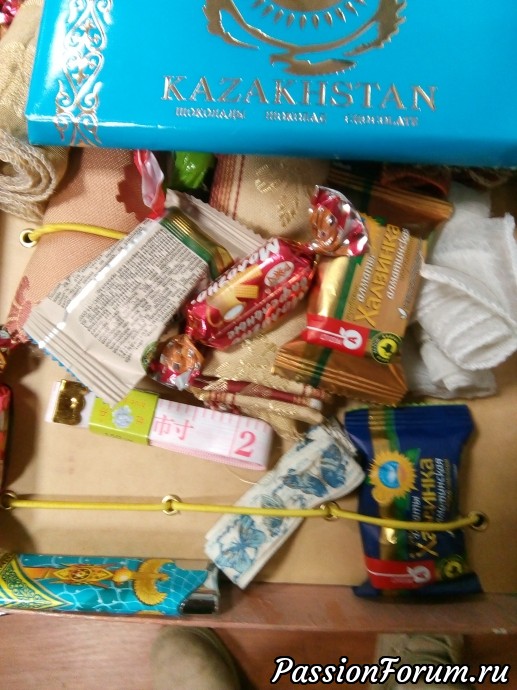 Добрый день,девочки! Я участвовала в менялках по органайзеру на стену для рукоделия. Вот получила из Алма-Аты свой.Я знала,что он ушел из Казахстана и ждала сообщения на телефон...и вот когда мои мысли заняты оформлением выставки...сообщение. Оторвалась от своих кукол...поехала на почту,получила,потресла...О...что-то брякает.Вернулась обратно в выстовочный зал...А там пахнет кофе. Анечка! Ваши конфеты пришли очень даже вовремя. Так-как куратор выставки тоже творческий человек...мы вместе рассматривали ваше творение, пили кофе с конфетвами и болтали. Ну много писать не буду. Смотрите.