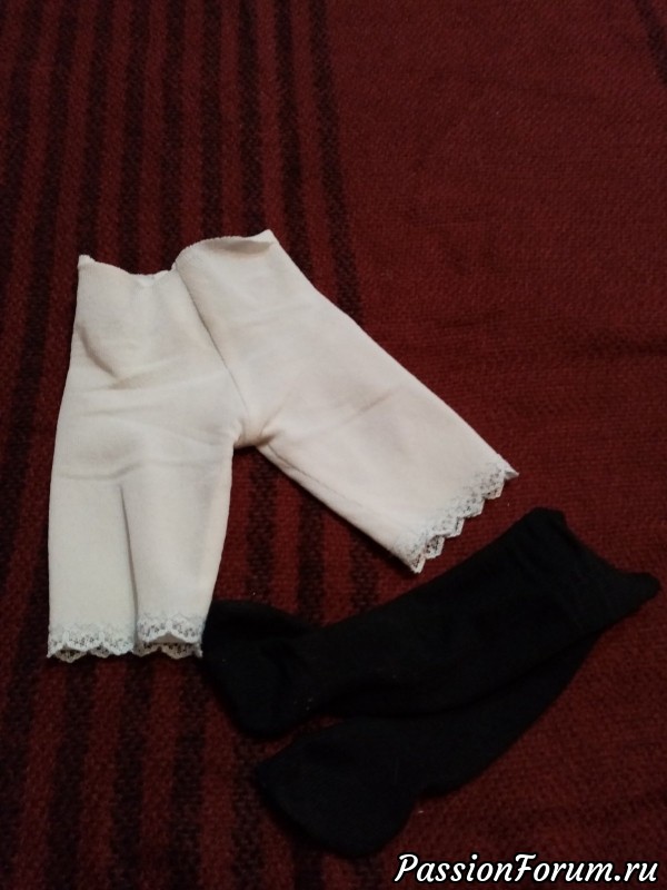 ИЗ СТАРОЙ ОДЕЖДЫ КУКЛЫ ОСТАВИЛА ПАНТАЛОНЧИКИ И ЧУЛОЧКИ.