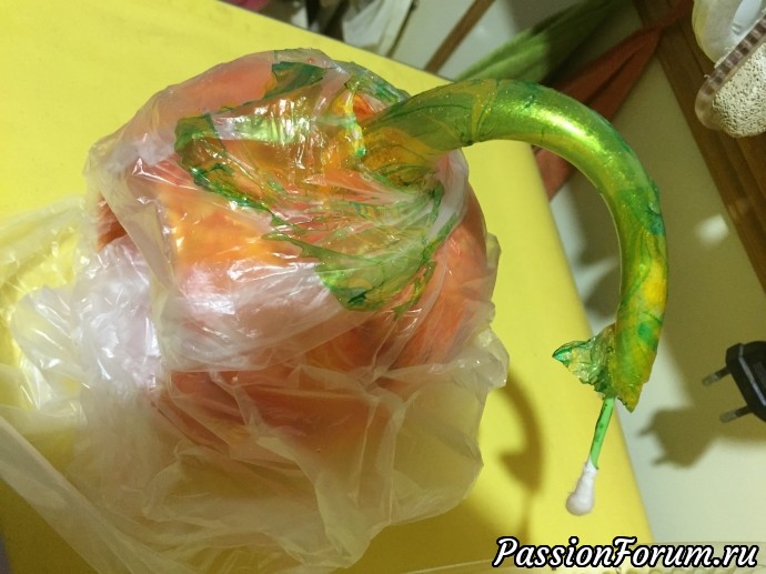 Защитить колбу целлофановым пакетом, оставив ручку для марморирования.