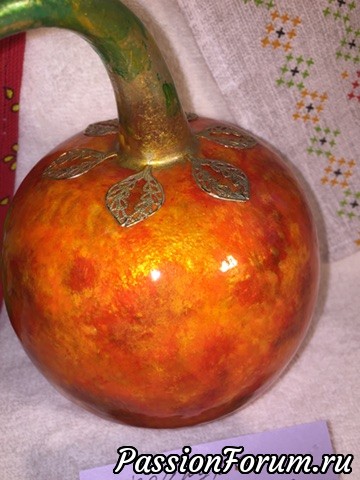 Яблоко или тыква? Да какая разница, окрас великолепный, аж светится изнутри… Здорово! А описание процесса… Даже слов не могу найти, получила от прочтения истинное удовольствие. Если бы Вы, как в 19 веке, писали мемуары, мне кажется это был бы бестселлер на все времена.Удачи Вам во всех видах творчества!