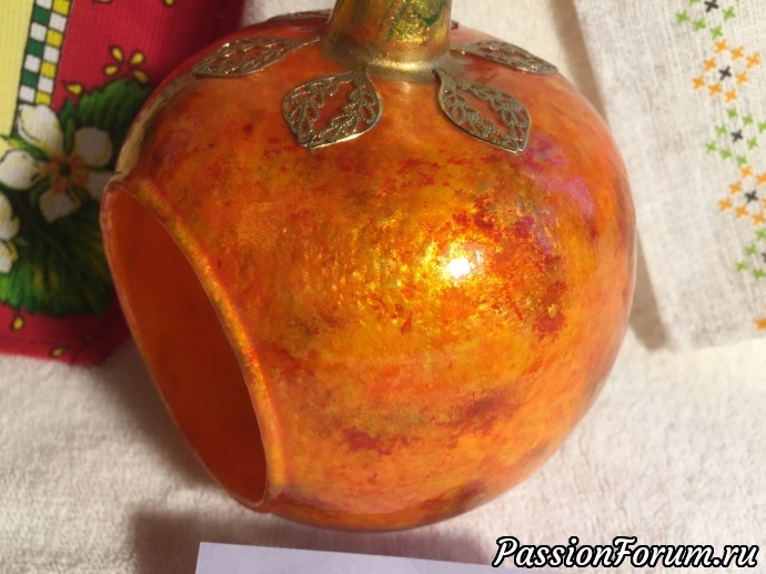 Непревзойдённый мастер каменно-драгоценных дел Фирдаус Батдалова и на меня подействовала своими чарами. Вот по её МК я и решила сделать имитацию янтаря. Но на подробности не надейтесь, приношу пардону... Потому как я эту работу делала по платному МК Фирдаус Батдаловой. Ей моё яблоко понравилось, кстати))). И разглашать подробности, я так полагаю, будет не совсем этично.