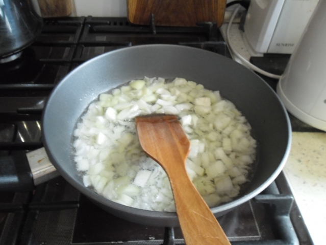 Вот такой гламурный кабачок. Порежем лук и положим в сковороду жарится или пассироваться, кому как организм продиктует