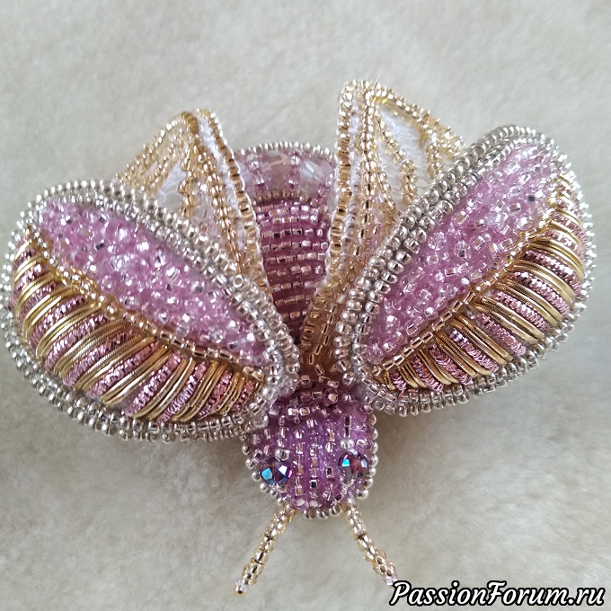 Летом сделала ещё одну брошечку "Фантазийный жук", в тех же розовых тонах.