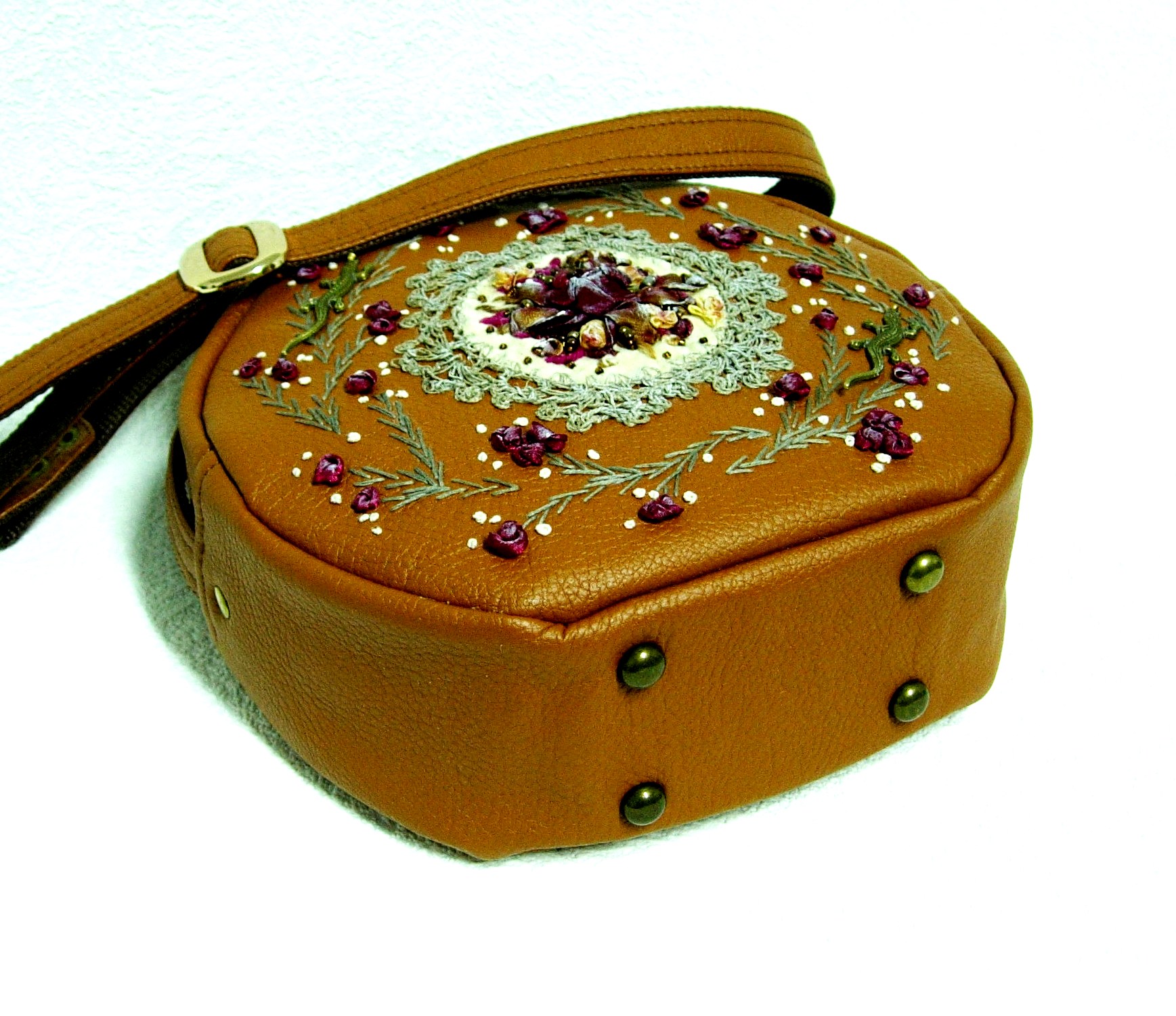 Сумка "Степные обманщицы" : Вы же тоже видите их?)))Этих степных обманщиц - ящерок, которые греются на солнце в степи , маскируясь среди редких трав и цветов) " ...Ящерка в траве. Мигнуть не успеешь Кадр жизни другой!" Круглая сумочка, сумочка -кругляш, которые я шью очень редко)А точнее, всего второй раз))) Коллекция "Медальон".