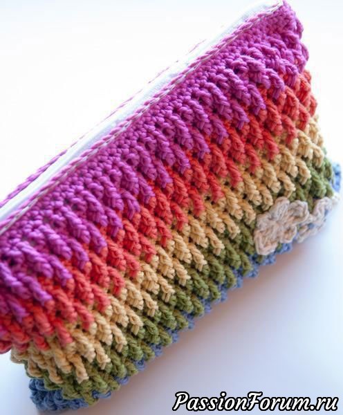 У каждой модницы должен быть аксессуар ручной работы, будь то украшения для волос, бусы или брошки, или как в нашем случае – яркая радужная косметичка, связанная крючком. А отправляясь на вечеринку с подружками, ее можно использовать как клатч. С таким аксессуаром вы не останетесь не замеченной, а подружки еще не раз спросят, где вы его взяли.