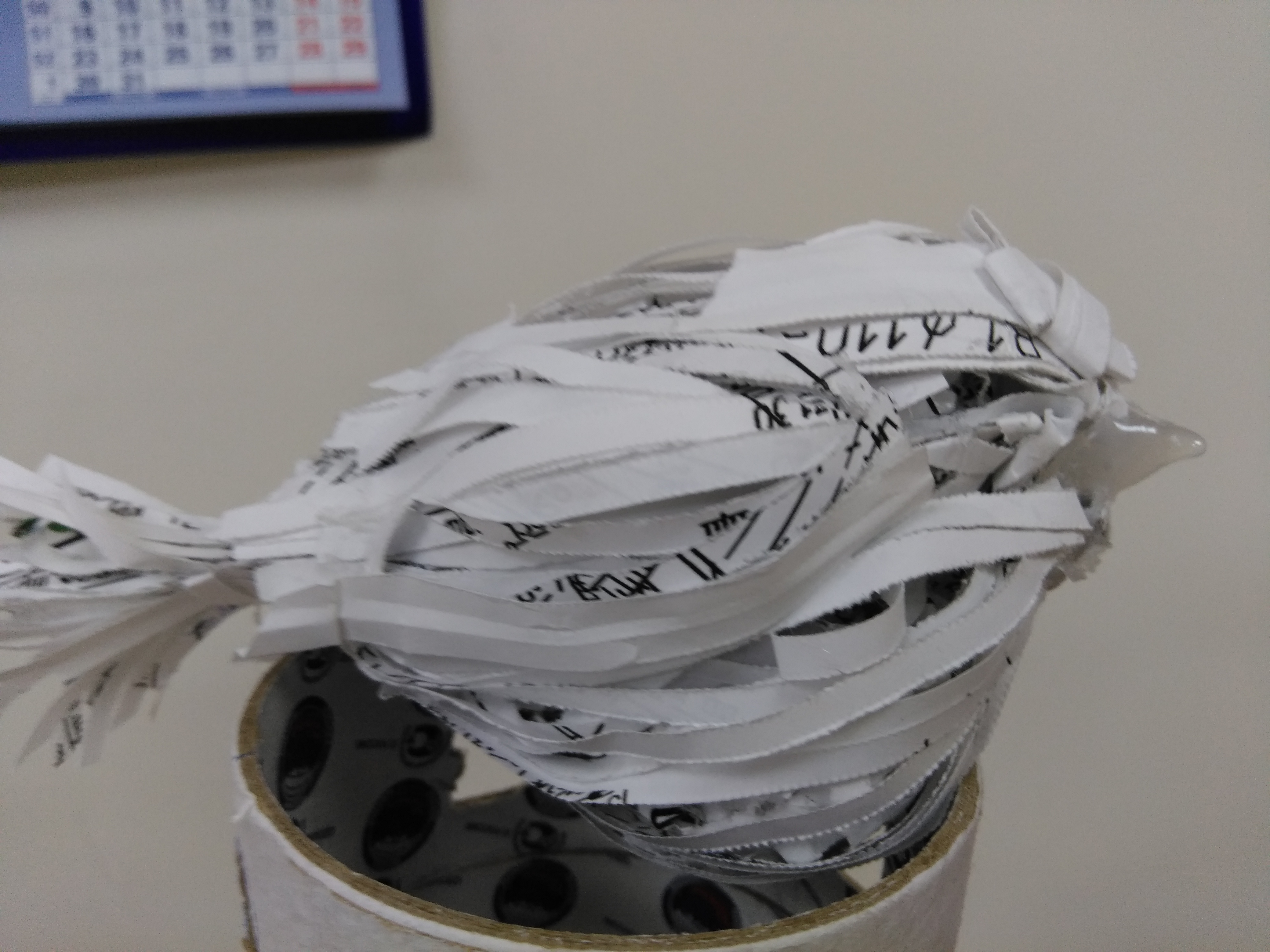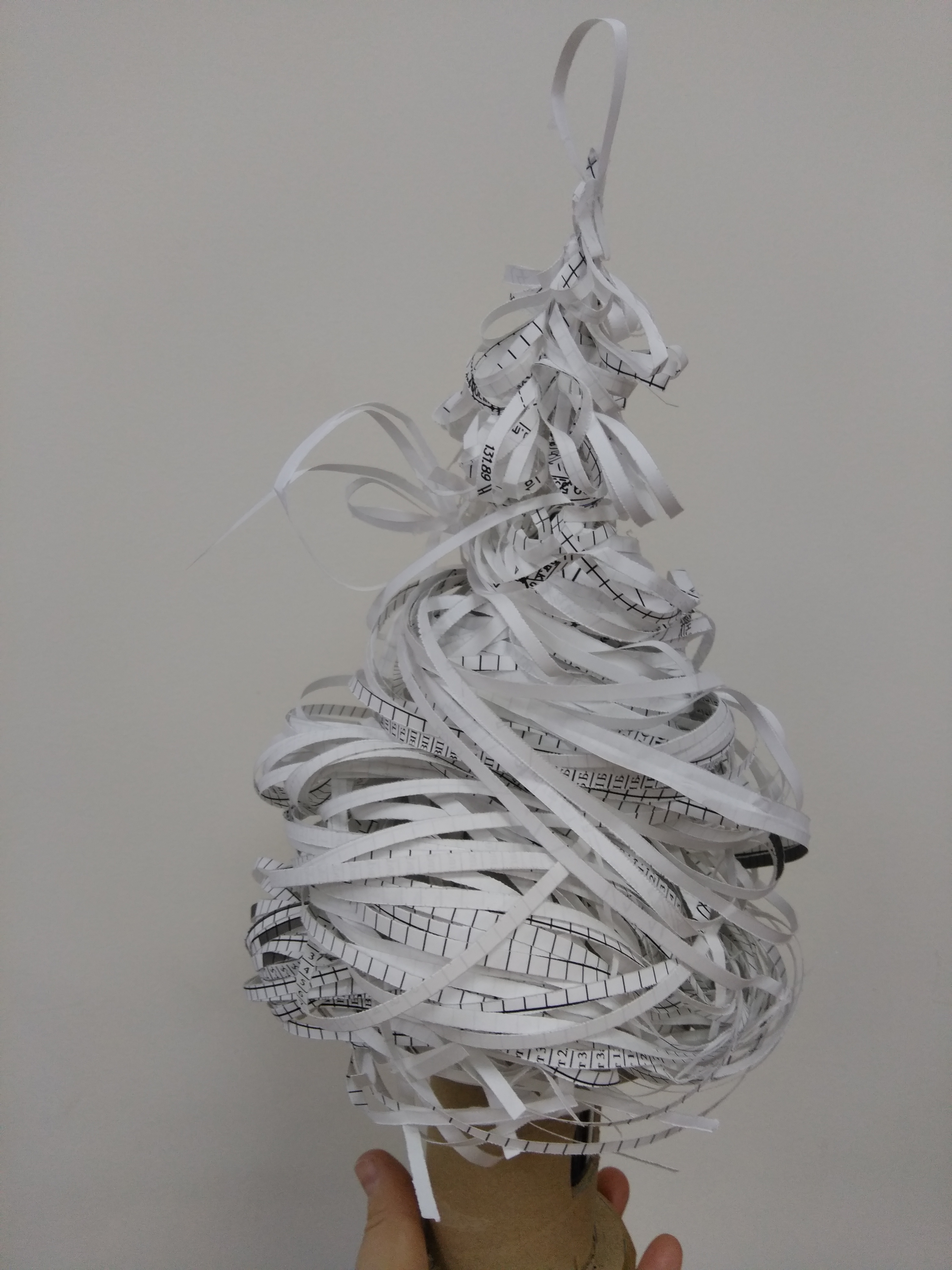 У меня на работе бывает много старых или лишних чертежей, а у шефа есть шредер, ну так и чего ему простаивать, когда такая нужная вещь пропадает?! Чего только я не делала из отходов шредера, сейчас покажу только заготовки, может кому и пригодится. Коса (делали с дарами осени, не успевали доделать дом осени, поэтому даже не тонировала в один цвет, просто соединила с оберточными обрезками), ёлка и птичка (птичек я таких уже в готовом виде показывала, на этот раз делала более легкую, чтобы не утяжеляла конструкцию новогодней инсталяции, в этот раз внутри нет плотной бумажной основы, только скатанный шарик из обрезков).