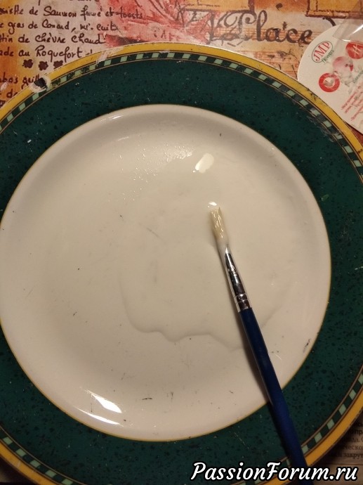 Я,для крепости глины ,сверху декор покрываю тем же клеем (Клей разбавляем водичкой и наносим кистью )