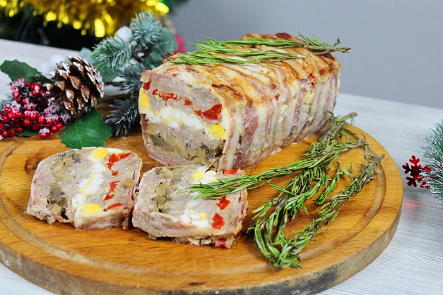 Сегодня готовим террин или мясной хлеб. Мясная запеканка получается сочной! А вид и аромат румяного бекона сразу вызывает аппетит!)) Такое блюдо можно подавать, как основное с любым гарниром. Можно подавать самостоятельно, как закуску. Отлично будет сочетаться с различными бутербродами. Готовим за сутки до подачи, а перед приходом гостей просто нарезаем) Тем самым 31 числа Вы потратите на это блюдо 5 минут)