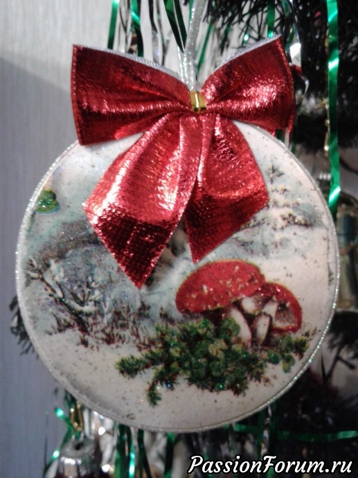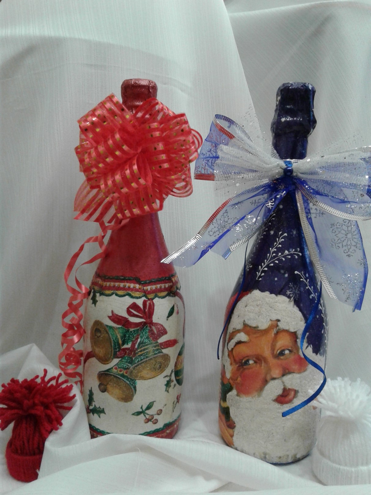 А здесь на левой бутылке попробовала приклеить вверху искусственный снег.